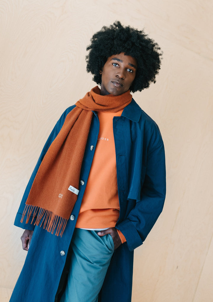 This TBCo Men's Scarf with fringe is woven from soft lambswool.