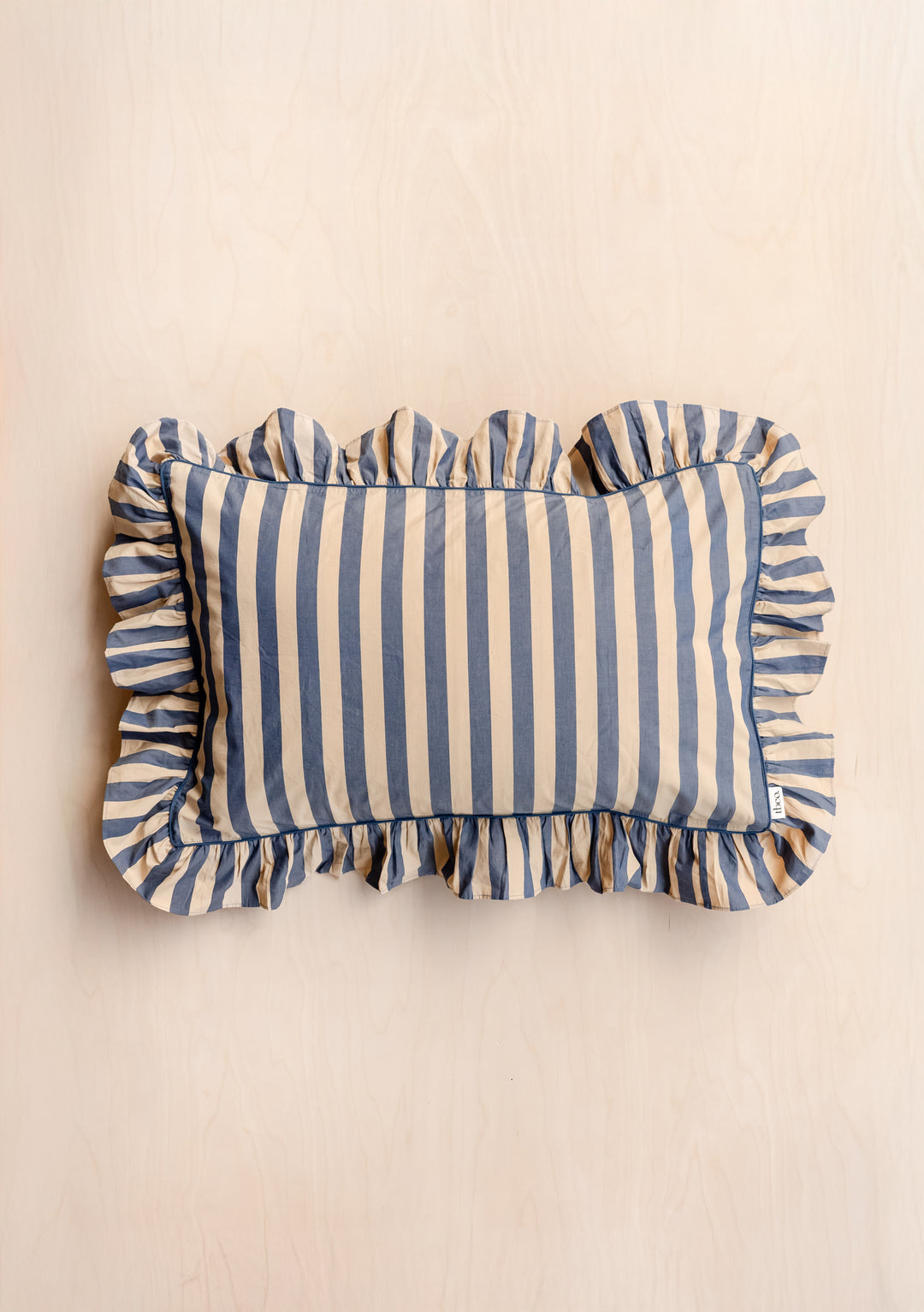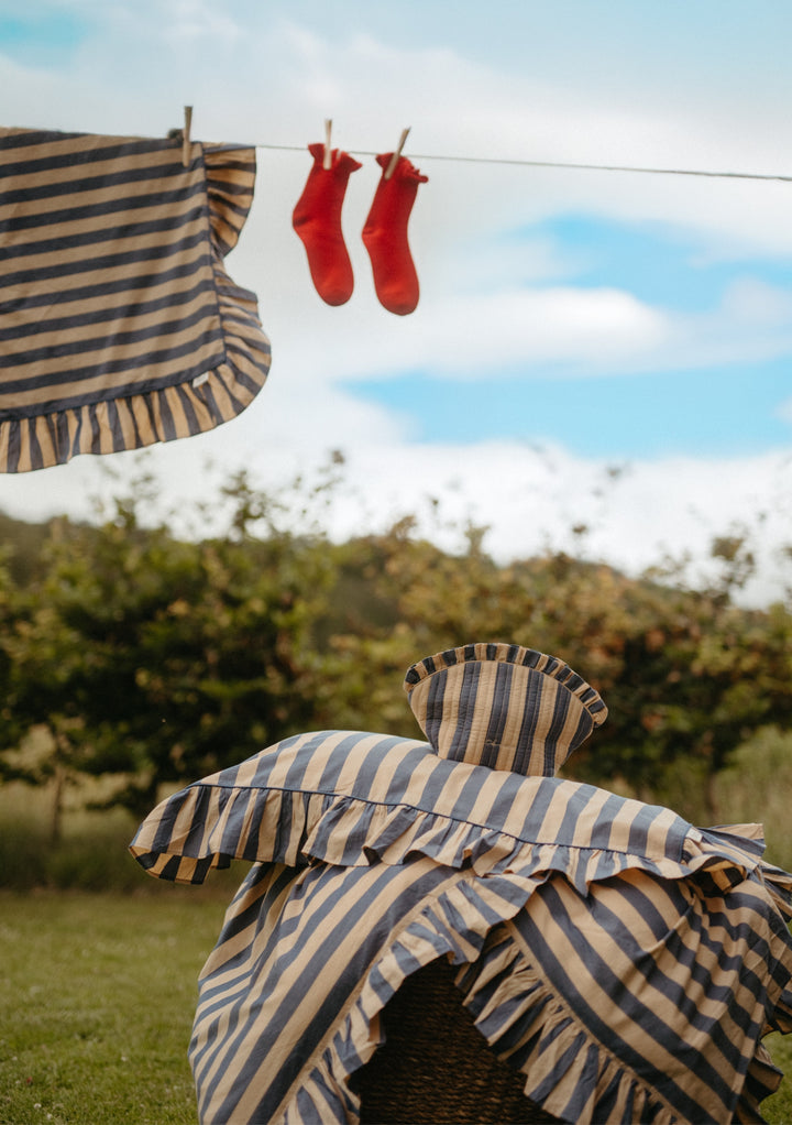Woven in crisp 100% cotton poplin and finished with a delicate ruffled edge, this pair of pillowcases in navy blue and sand stripe is soft and breathable for a comfortable night's sleep. Mix or match with our collection of duvet covers.