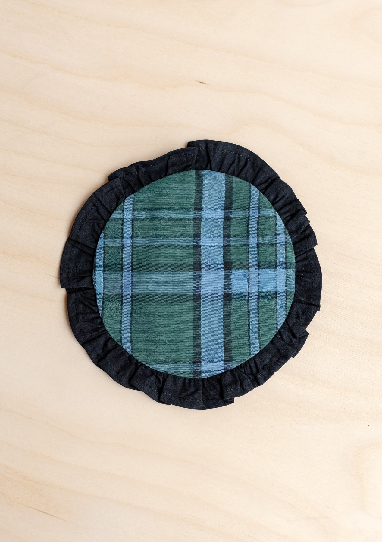 Bring festive charm to your table with this set of two cotton coasters in a timeless green and blue tartan check. Crafted from 100% sustainable cotton with a contrasting black ruffled edge, they're perfect for adding warmth and colour to your seasonal tablescape. Mix and match with our tableware collection, including table runners and placemats to complete the look.
