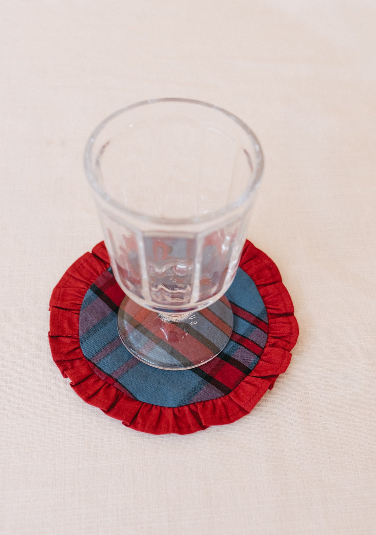 Bring festive charm to your table with this set of two cotton coasters in a timeless red and navy tartan check. Crafted from 100% sustainable cotton with a contrasting red ruffled edge, they're perfect for adding warmth and colour to your seasonal tablescape. Mix and match with our tableware collection, including table runners and placemats to complete the look.