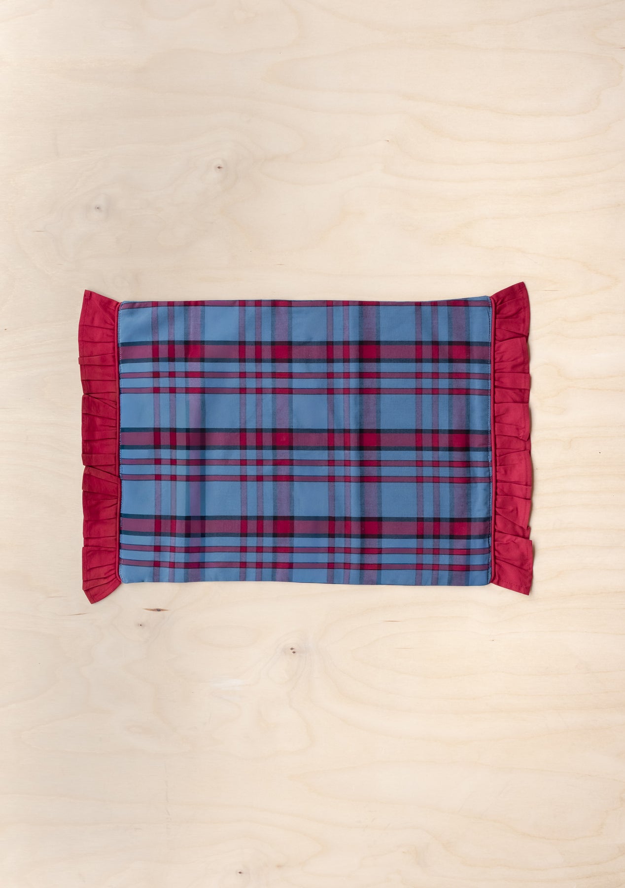 Cotton Placemats Set of 2 in Navy Tartan by TBCo featuring red piping and ruffled edges for a festive table setting