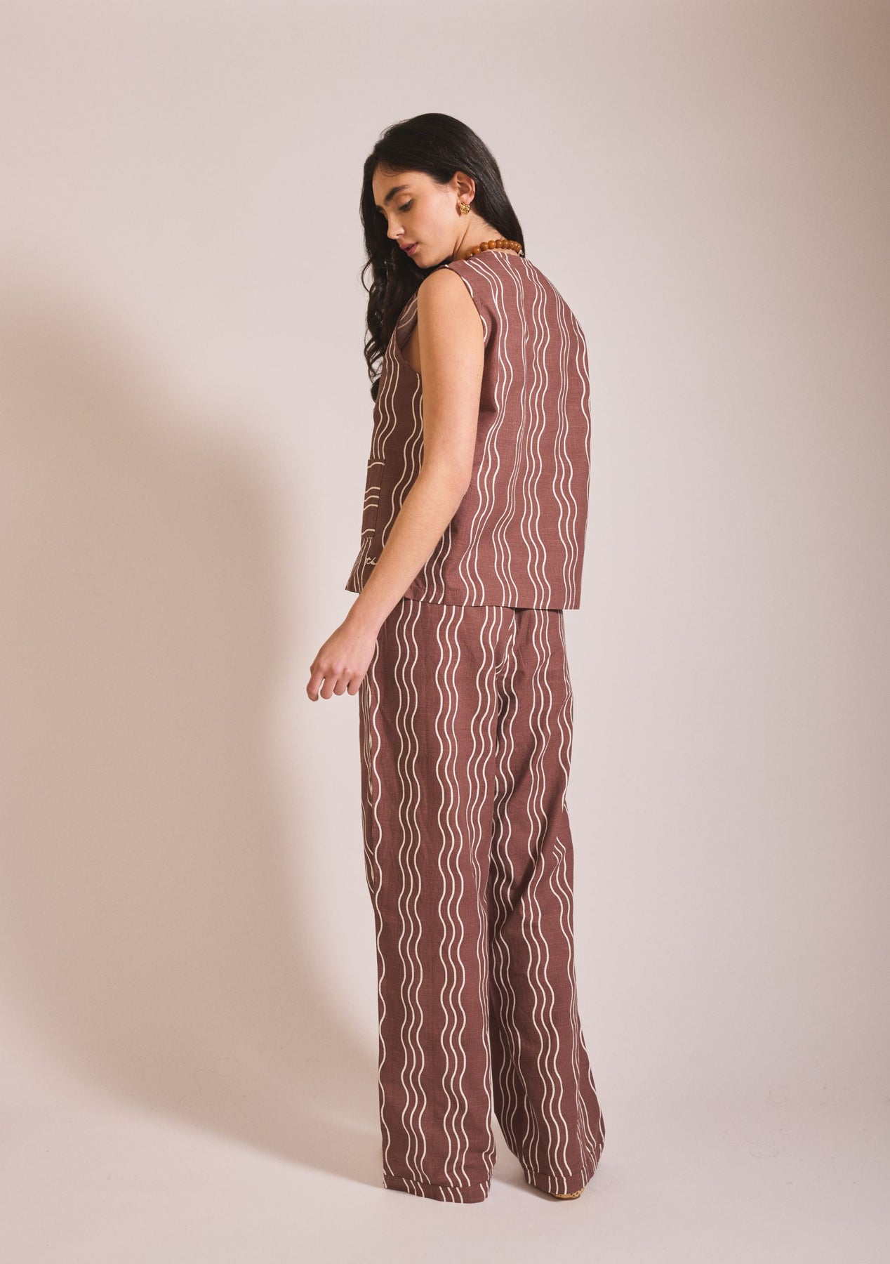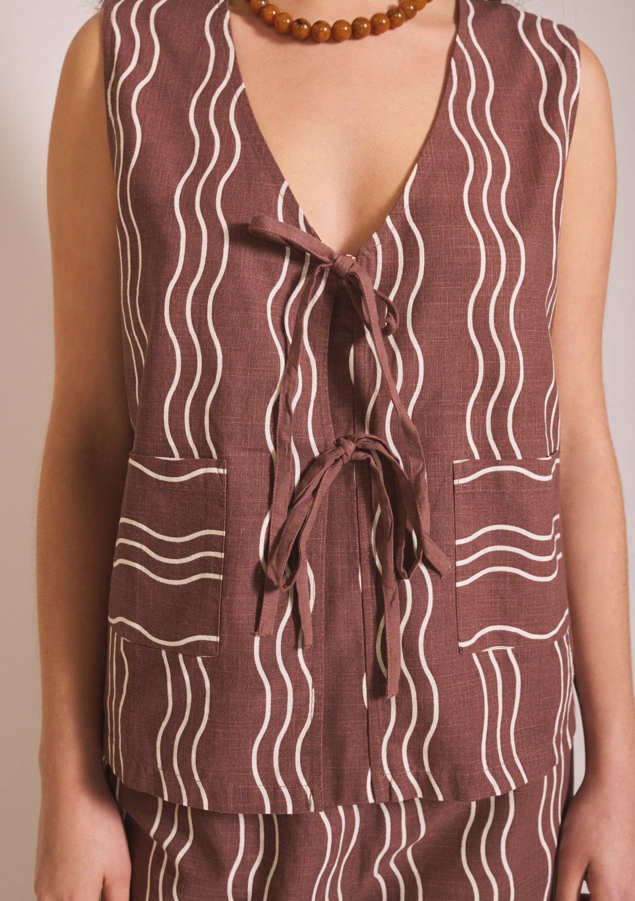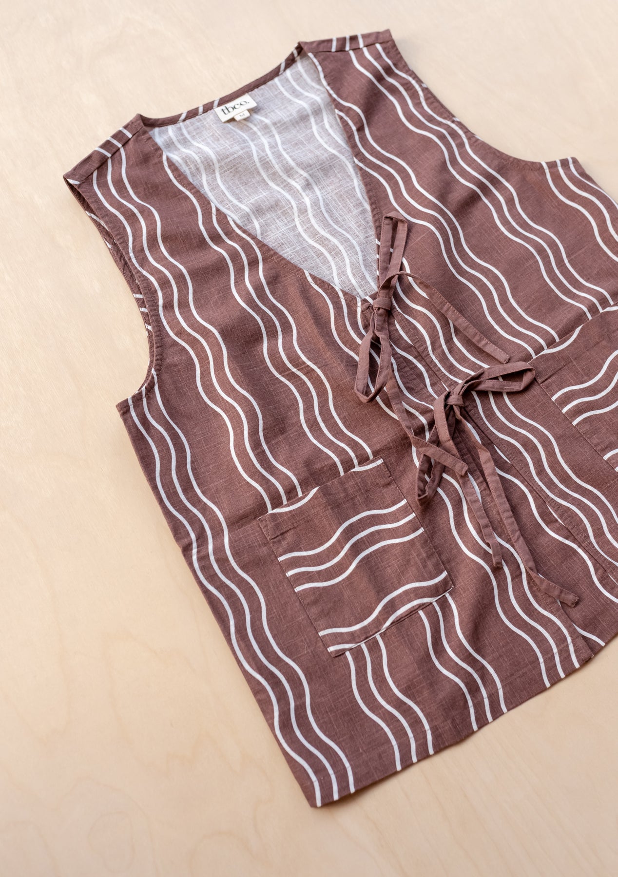 Cotton Tie Vest Brown Wave