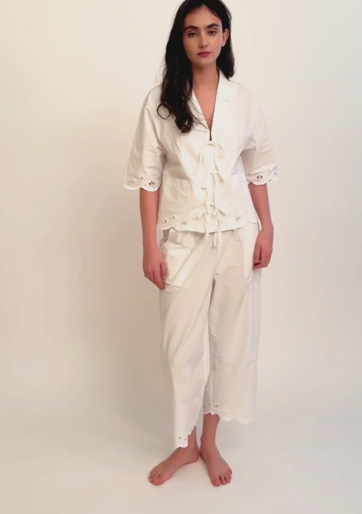 Cropped Cotton Pyjamas White Shell