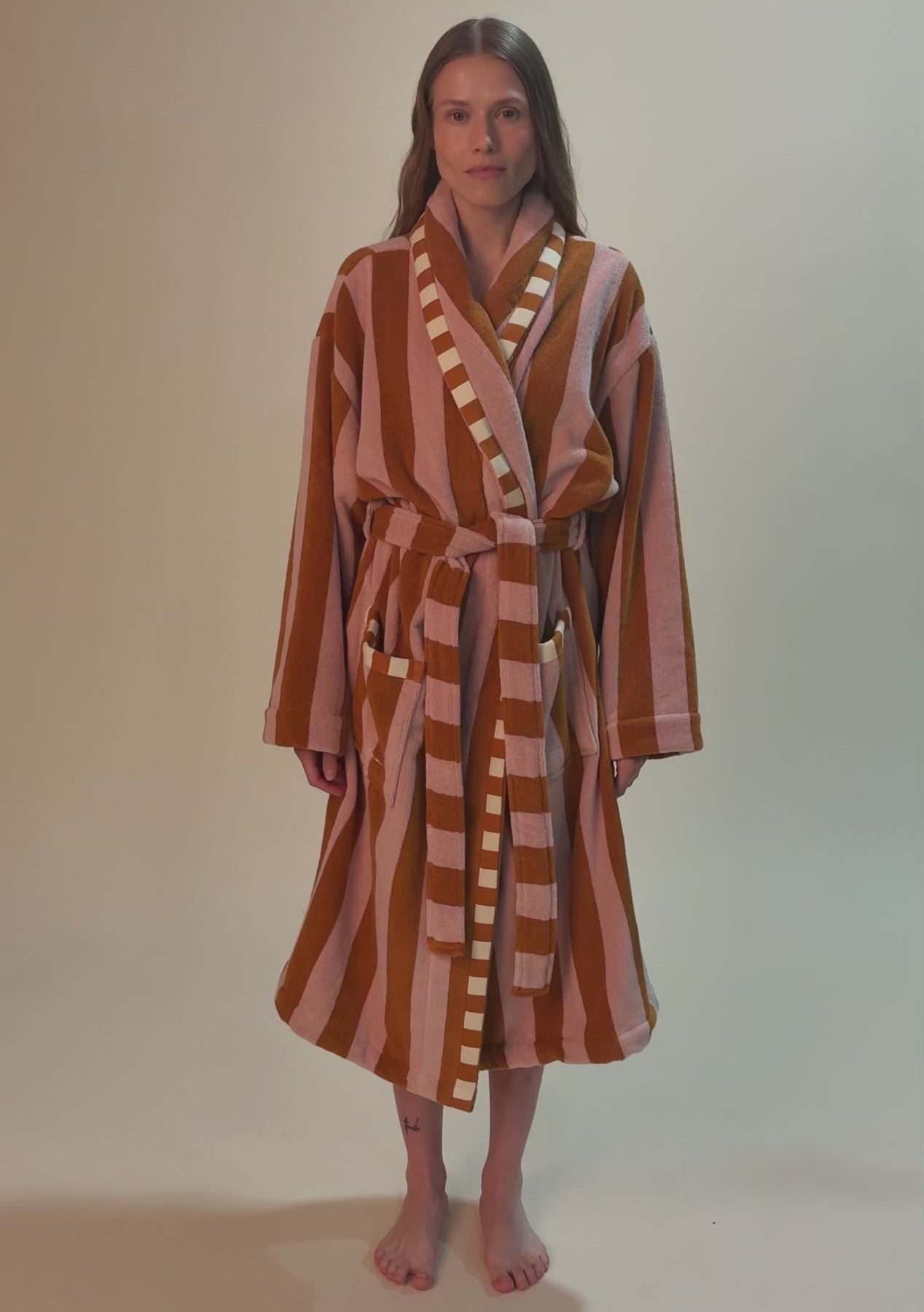 Terry Cotton Bath Robe Honeycomb Stripe