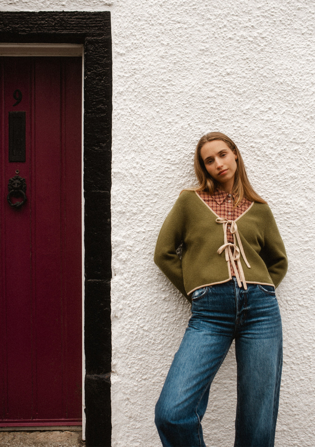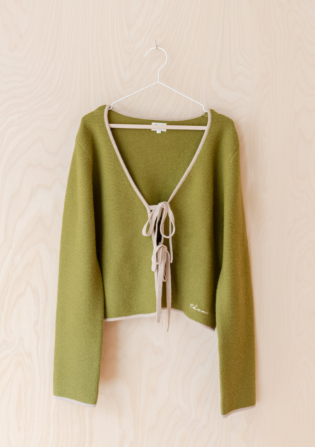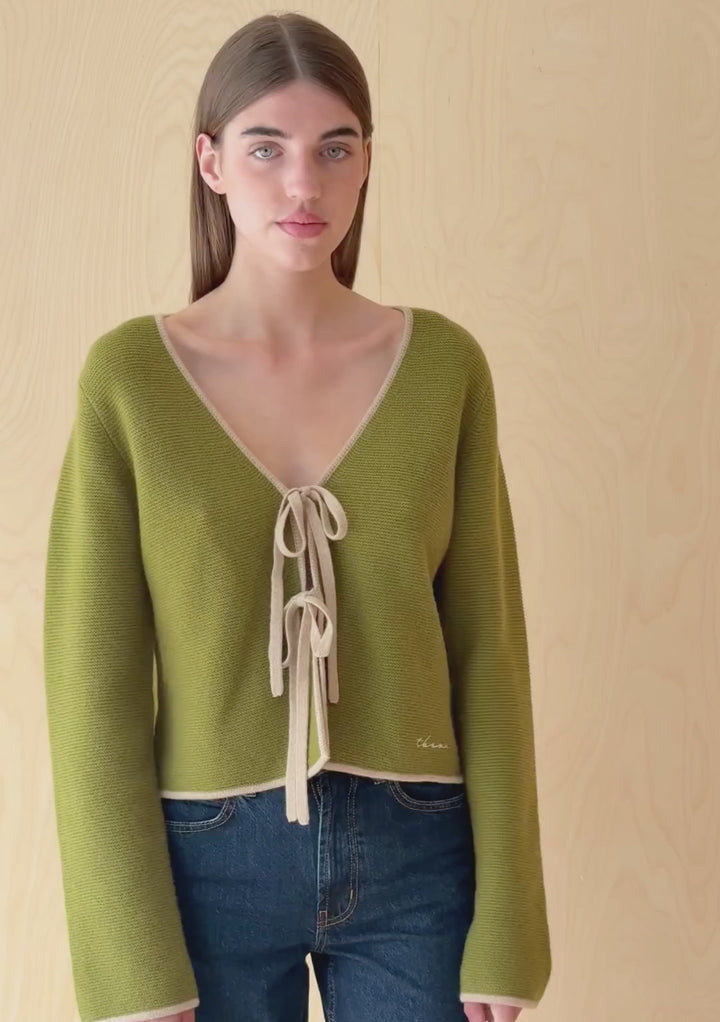 Strickjacke aus Merinowolle mit Krawatte Grün