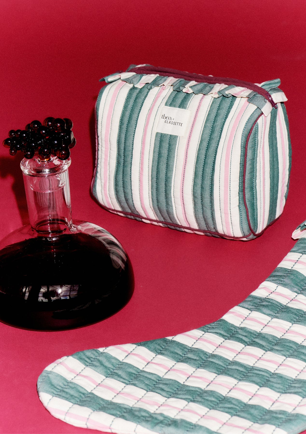 TBCo × Glassette Baumwoll-Waschbeutel Grüner Streifen