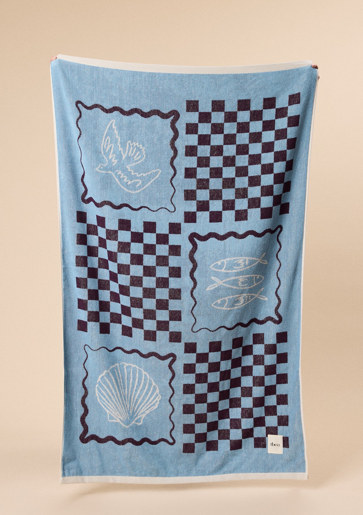 Nos nouvelles serviettes de plage sont 100 % coton et conçues pour être utilisées au quotidien. Avec un motif audacieux de damier côtier qui reflète la palette de notre collection de maillots de bain, cette serviette de plage bleue et bordeaux est le partenaire idéal de votre look de bain. Il suffit de vous envelopper et de laisser le design opérer sa magie.