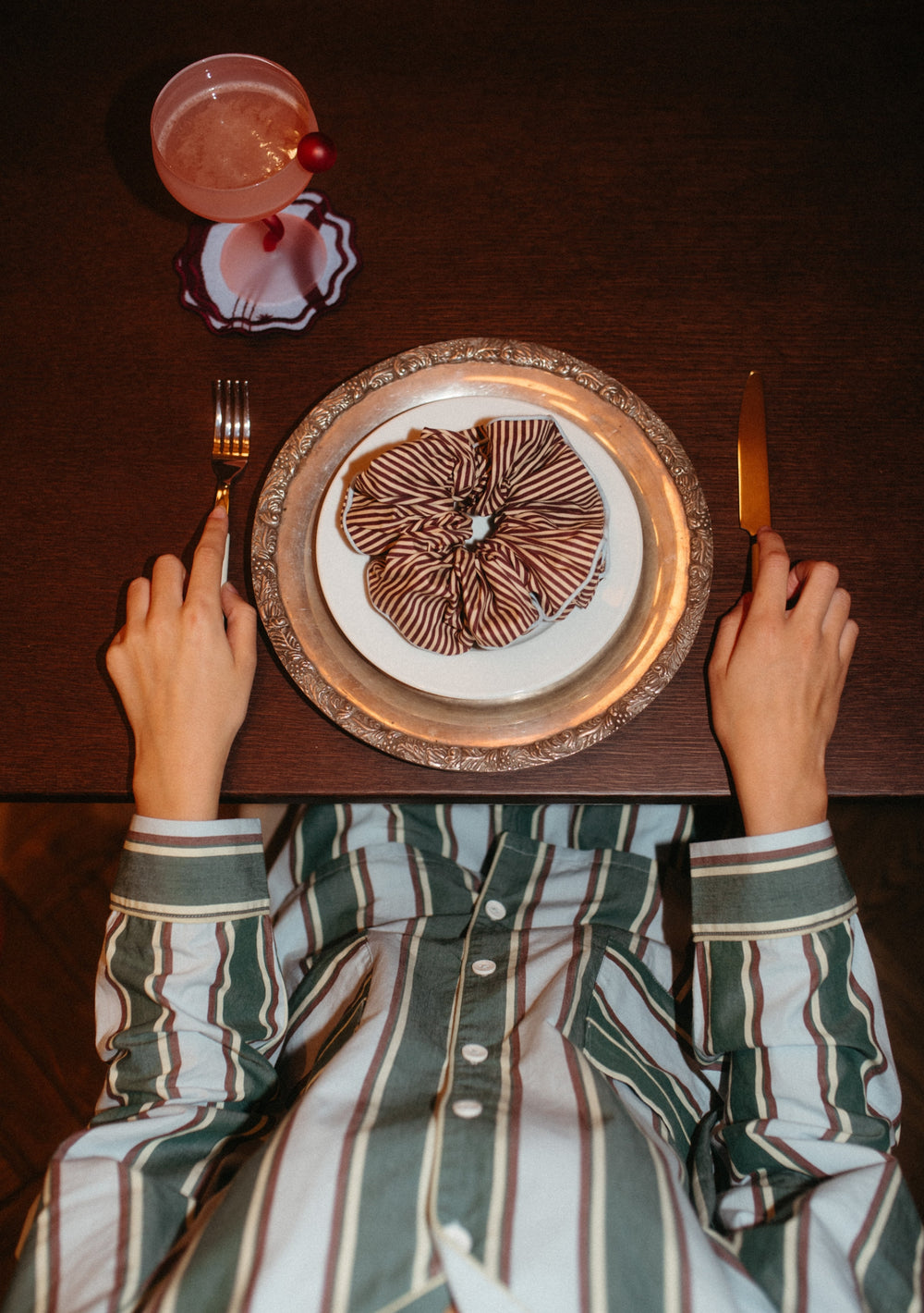 Rehaussez votre queue de cheval avec ce chouchou oversize en coton aux délicates rayures marron et camel. Mieux encore, il s'accorde parfaitement avec les autres articles de notre collection nuit pour un look impeccable.