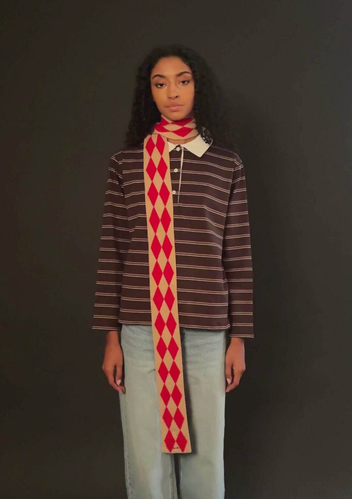 Voici votre accessoire indispensable. Confectionnée en laine mérinos 100 % d'une douceur incomparable, cette écharpe fine TBCo à motif losanges arlequin rouge et beige revisite la tradition avec une touche d'originalité. Sa silhouette élancée apporte une texture audacieuse et des détails subtils, rehaussant instantanément des tenues familières avec un minimum d'effort.