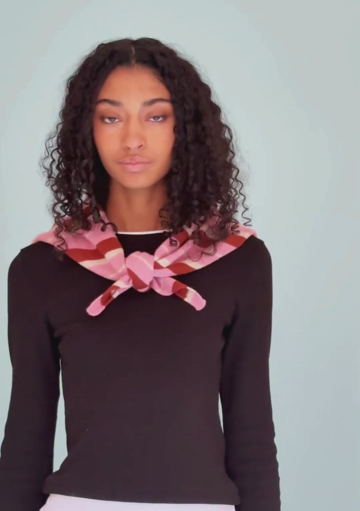 Écharpe triangulaire en laine mérinos Rayures roses et rouille