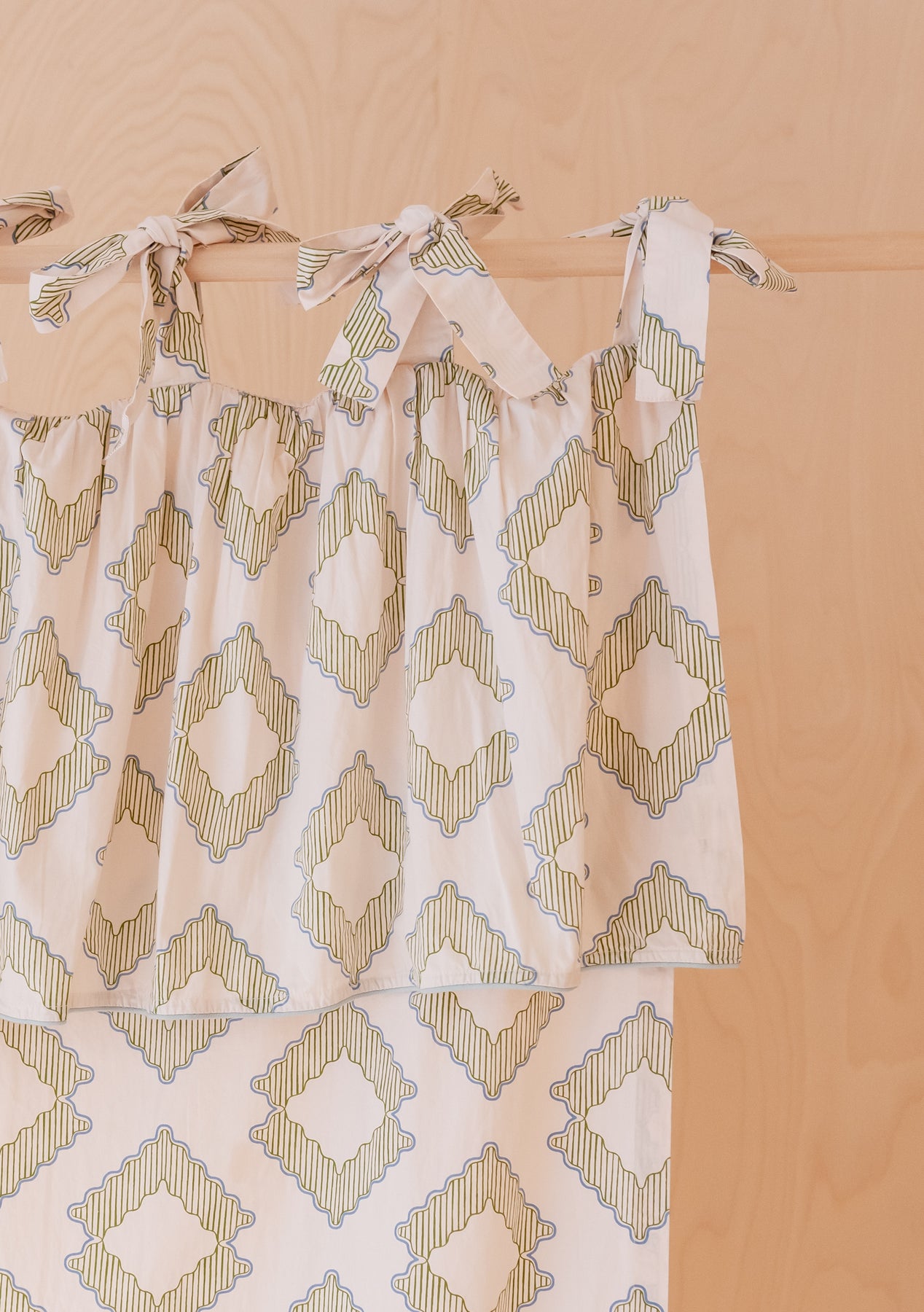 Paire de rideaux à nouer en coton Diamant vert