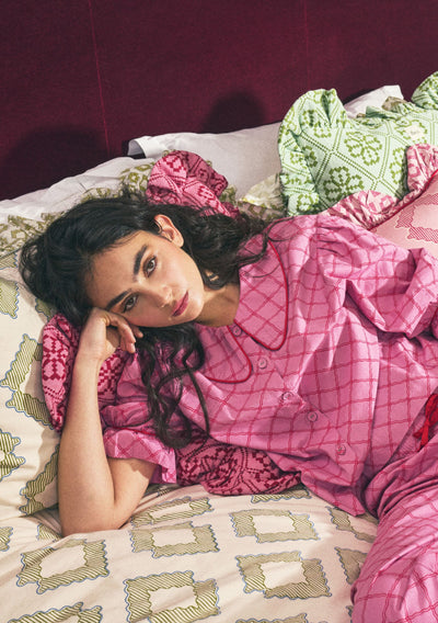 Recycled Wool Blanket Pink & Red Checkerboard